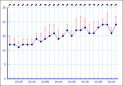 | Date | Time | Wind speed | Wind gusts | Wind direction |
